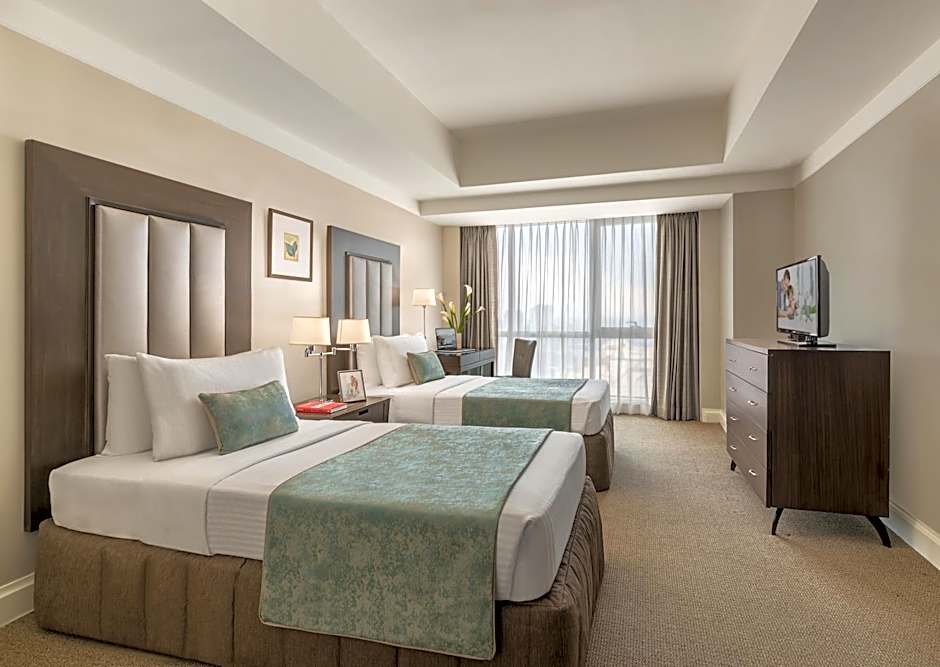 2-Bedroom Deluxe is 1163 square feet and includes either a king-size bed 150-183 width or 2 single beds 80-130 width plus living room.